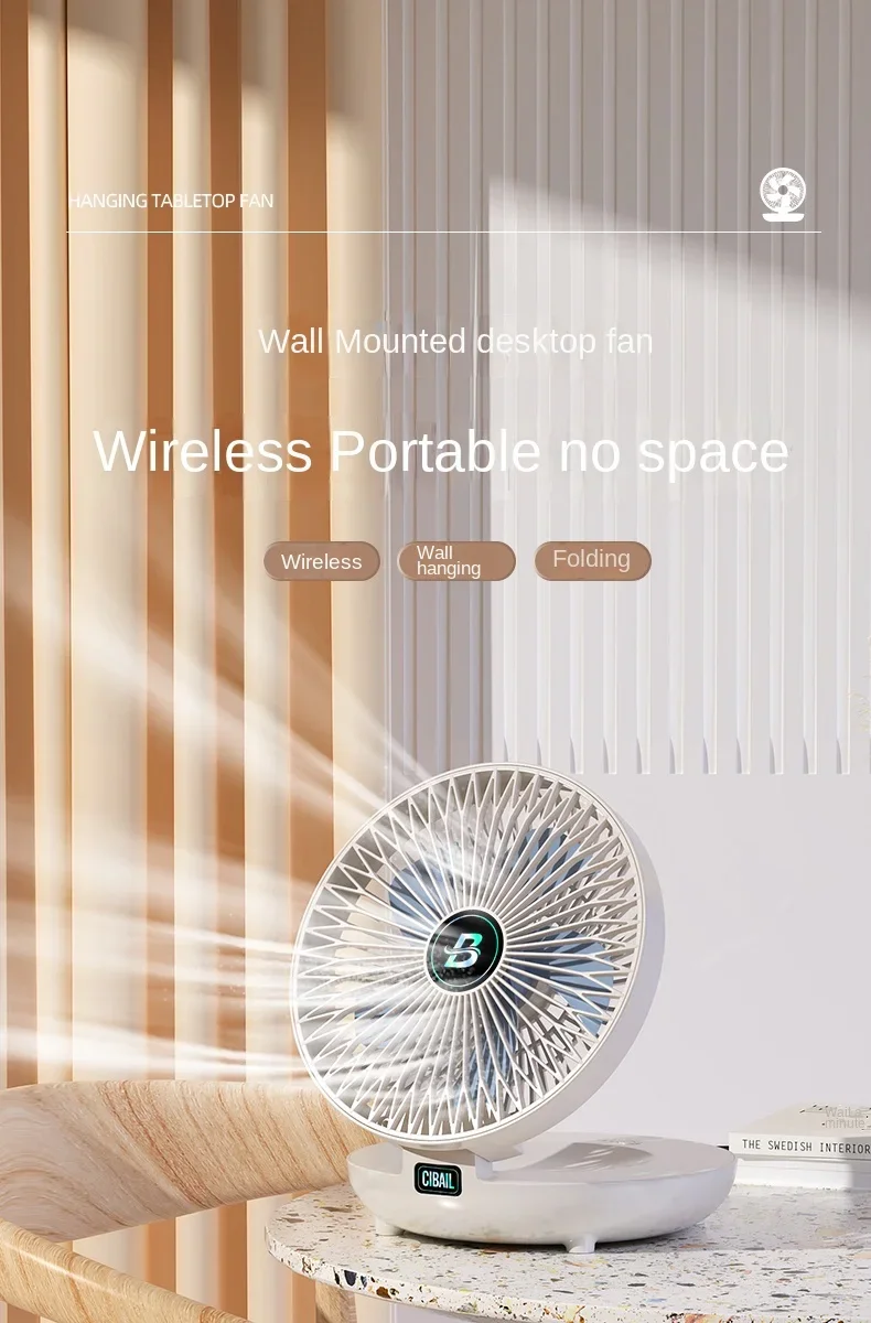 ABYYTE 2025Hot Sell 2IN1 Folding Desktop Fan Portable Air Conditioner Wall Mounted Fan Rechargeable with 3 Gears for Home Office