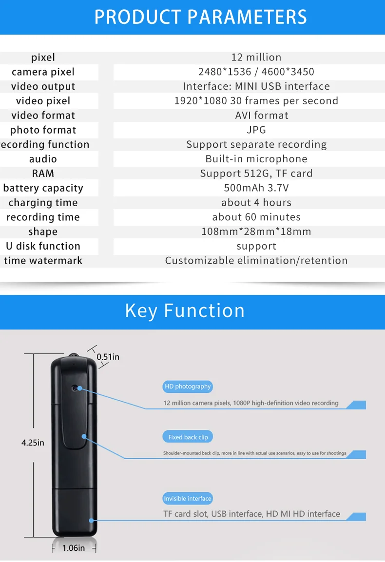 Shooting pixel:FULL HD/1920*1080P 30-frame