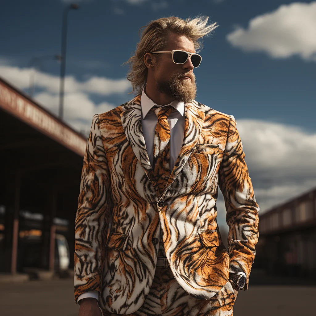 New Design Mens 2 Piece Suit Notched Lapel Fashion Vintage Coat Tiger Leopard Print Two Buttons Slim Fit Suit
