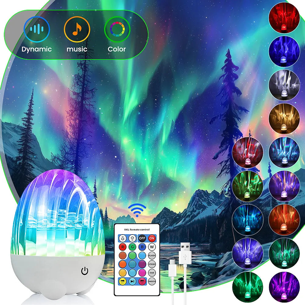 Dynamic Rotating Dinosaur Egg Mood Night Light, 13 Color Changing, USB Rechargeable Projector Lamp with Touch & Remote for Room