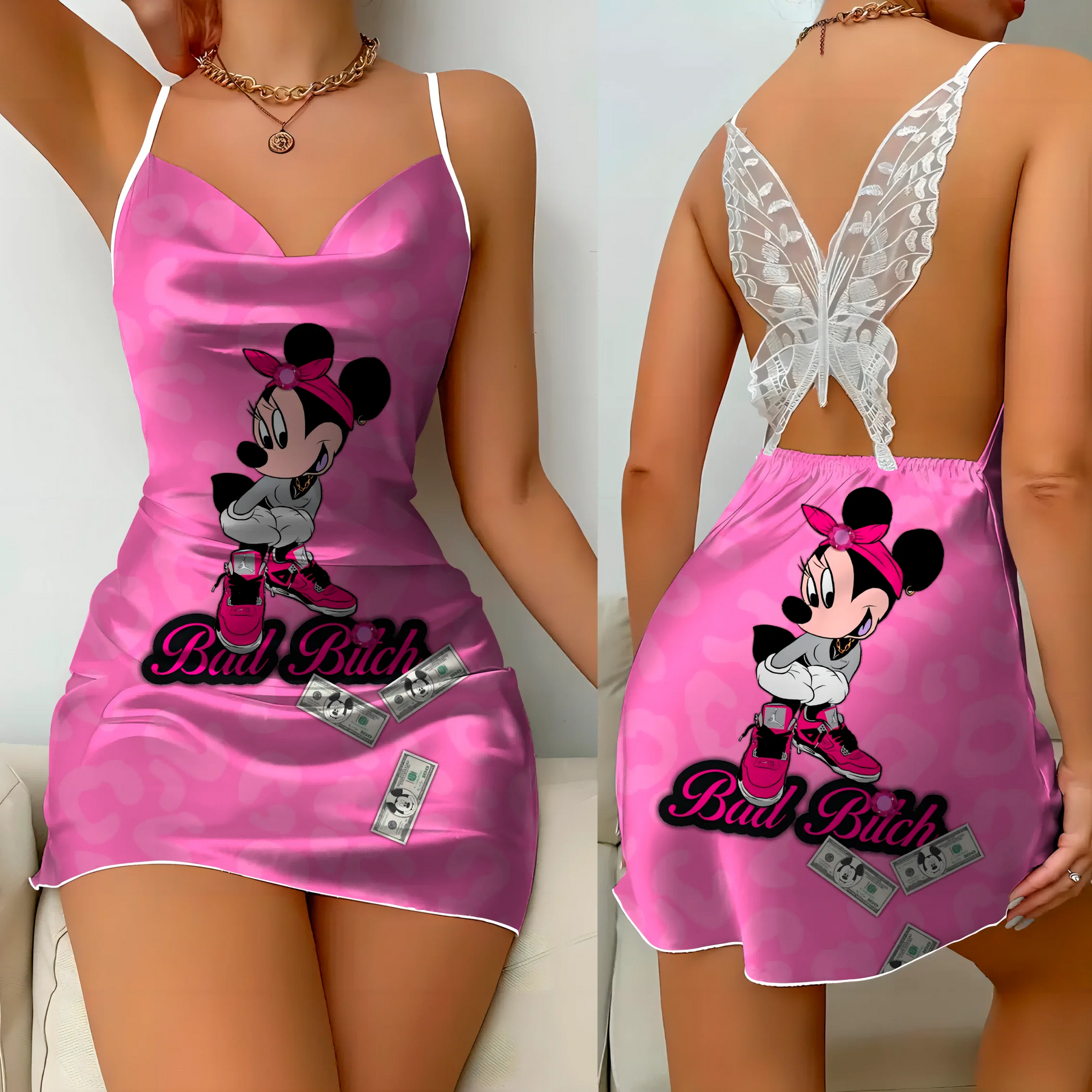 Mini Dress Pajama Skirt Bow Knot Party Dresses Satin Surface Minnie