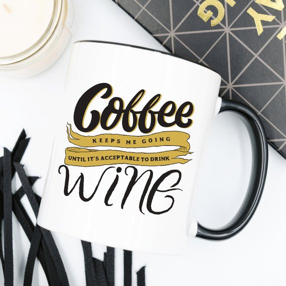 •"Coffee Keeps Me Going Until It's Acceptable To Drink Wine - Funny Coffee Mug" . You never have to worry when you do business with ; we stand by our mugs 100%.