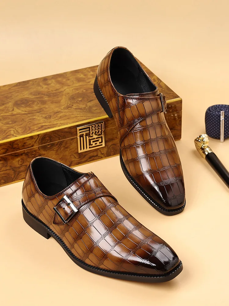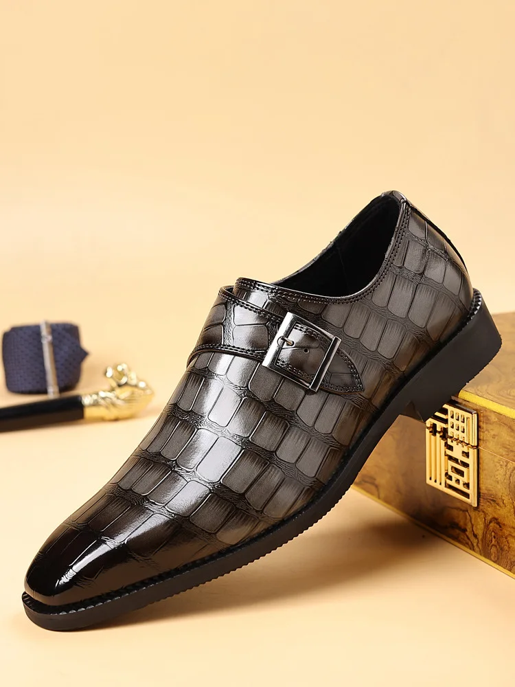 Gentleman Monk Strap Loafers Men's Crocodile Pattern Belt Buckle Leather Shoes Designer Formal Wedding Dress Homecoming Footwear