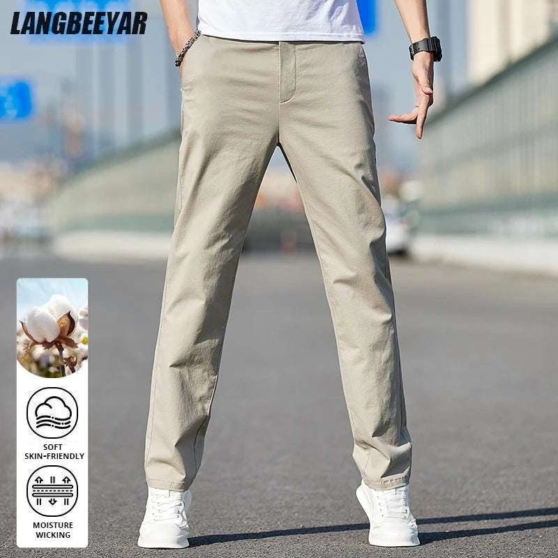 Top Quality 100% Cotton New Brand Casual Fashion Business Long Pants Straight High Waist Regular Fit Trousers Men's Clothing