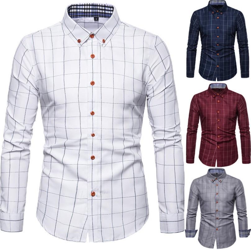 Mens Designer Slim Fit Dress Shirts Turn-down Collar Long Sleeved