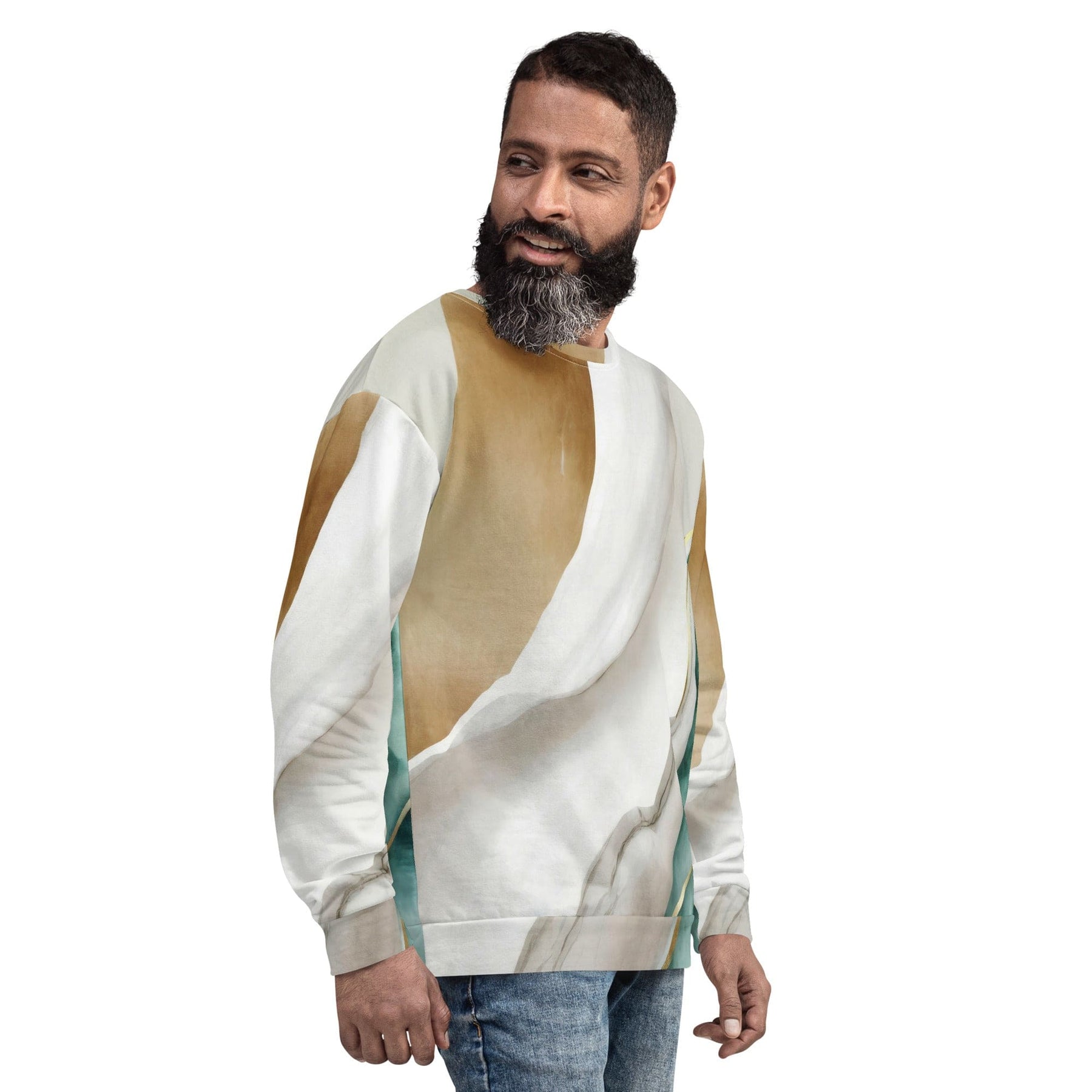 Graphic Sweatshirt for Men, Cream and White Marbled Pattern. Each unique, all-over printed sweatshirt is precision-cut and hand-sewn to achieve the best possible look and bring out the intricate design. What's more, the durable fabric with a cotton-feel face and soft brushed fleece inside means that this sweatshirt is bound to become your favorite for a long time.
