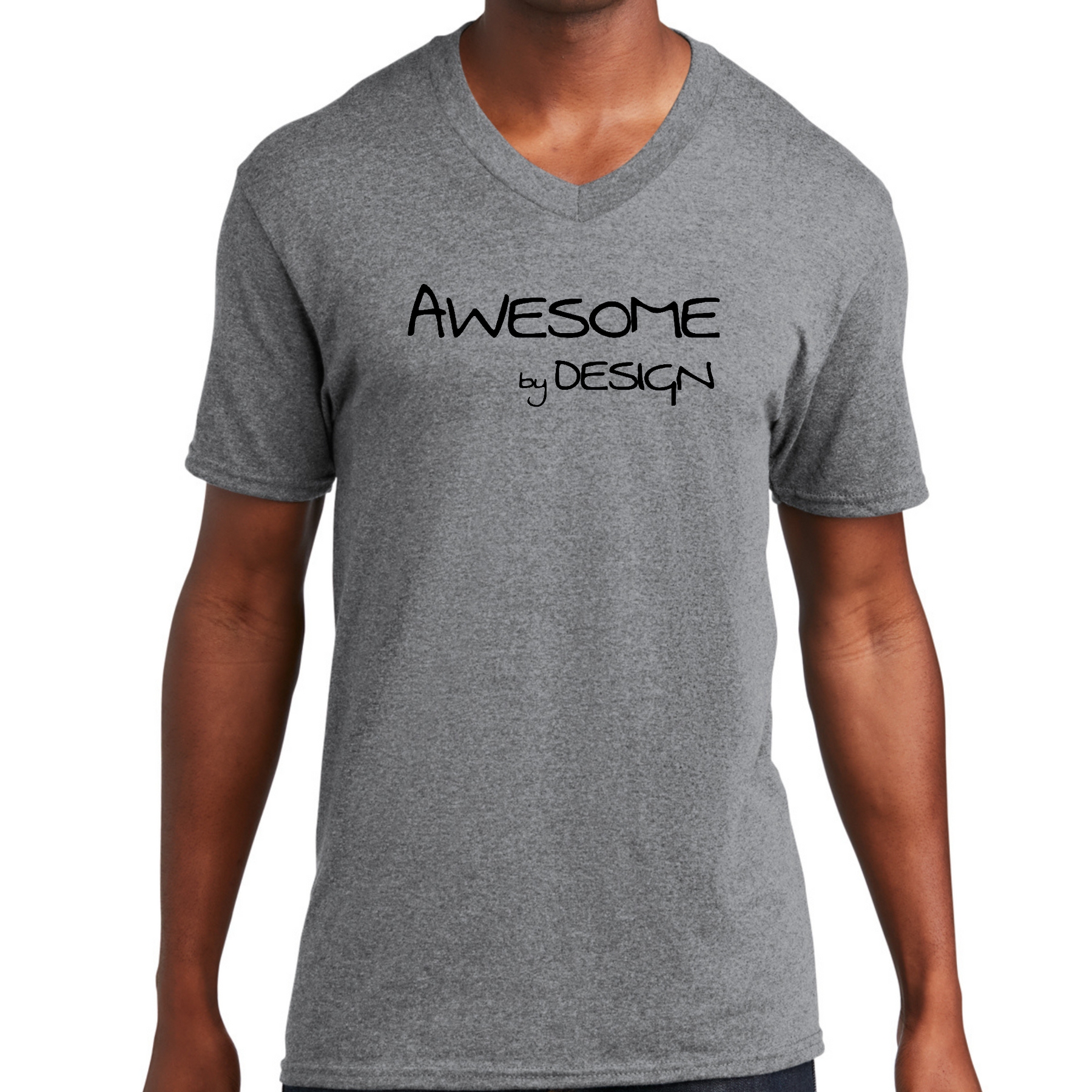 Mens Graphic V-Neck T-Shirt, Awesome By Design Black Print. This t-shirt is crafted with the imaginative and creative individual in mind, offering a dynamic style for those who appreciate unique designs. Tailored for creative personalities, this tee features a stylish print that stands out, making a bold and expressive statement. With its edgy graphics and modern design, it captures the essence of contemporary fashion while providing comfort for everyday wear. The tee effortlessly merges casual and artistic elements, making it an ideal choice for those who seek to infuse their wardrobe with a touch of originality. Perfect for individuals who embrace their creativity, this graphic T-shirt serves as a canvas for self-expression, allowing wearers to showcase their unique personalities through fashion.