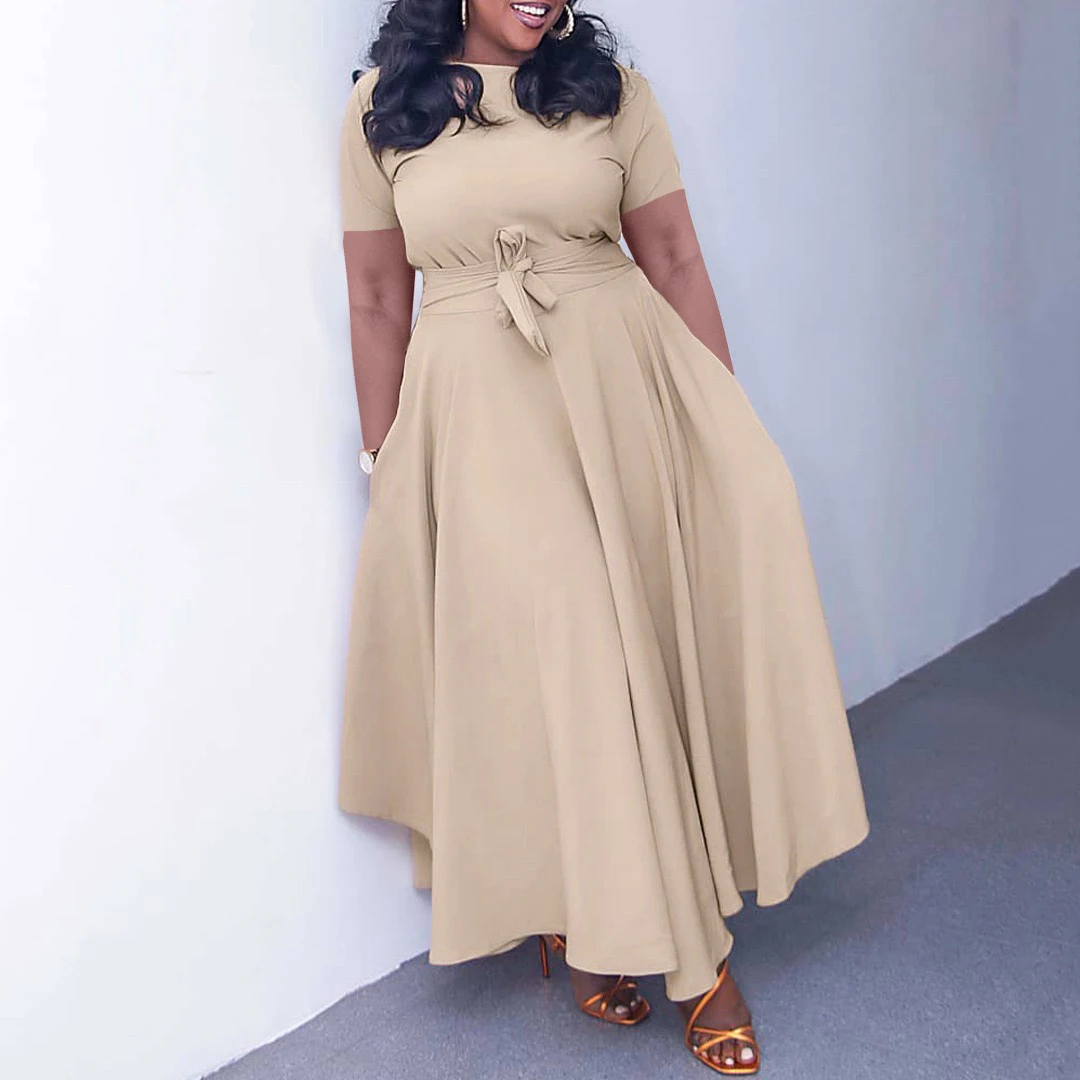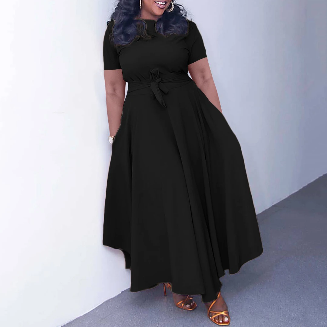 Elegant Women Dresses for Summer New Short Sleeve O Neck Sashes Pleated Ankle Length Luxury African Party Birthday Dress
