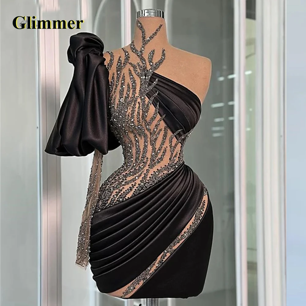Glimmer Black Graduation Dresses for Teenagers One Shoulder Lace Pleated Wedding dresses for parties Robes De Soiree Customized