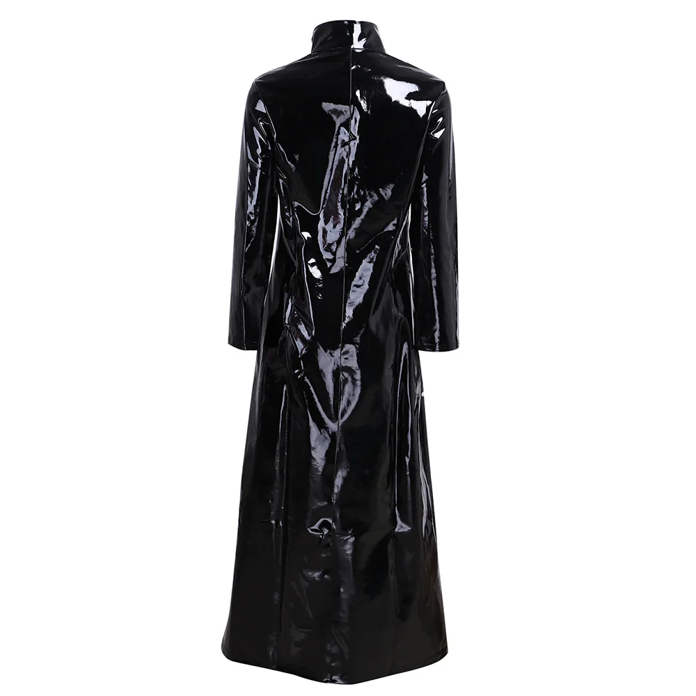 Wet Look PVC High Split Long Dress Shiny PU Leather Windbreaker Outwear Vestido Tights Performance Dresses Robe Faldas Jackets