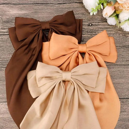 3Pcs Large Elegant Ribbon Bow Hair Clip for Women Simple Solid Color