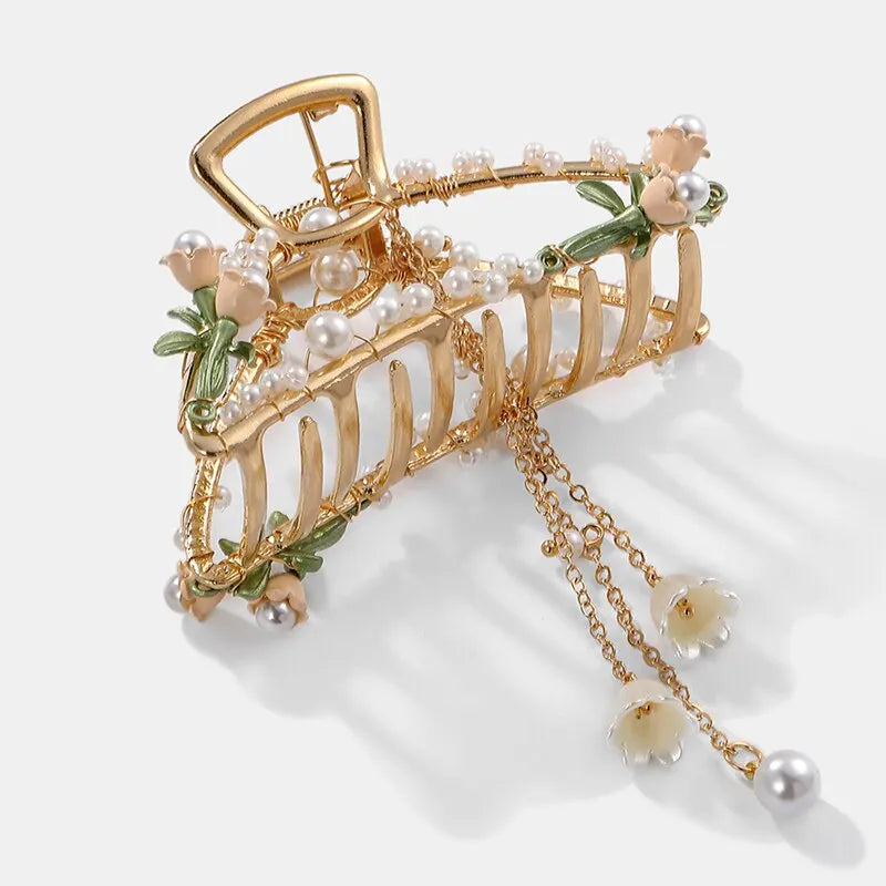 Imitation Pearl Flower Decor Charm Hair Claws For Women Girls Large