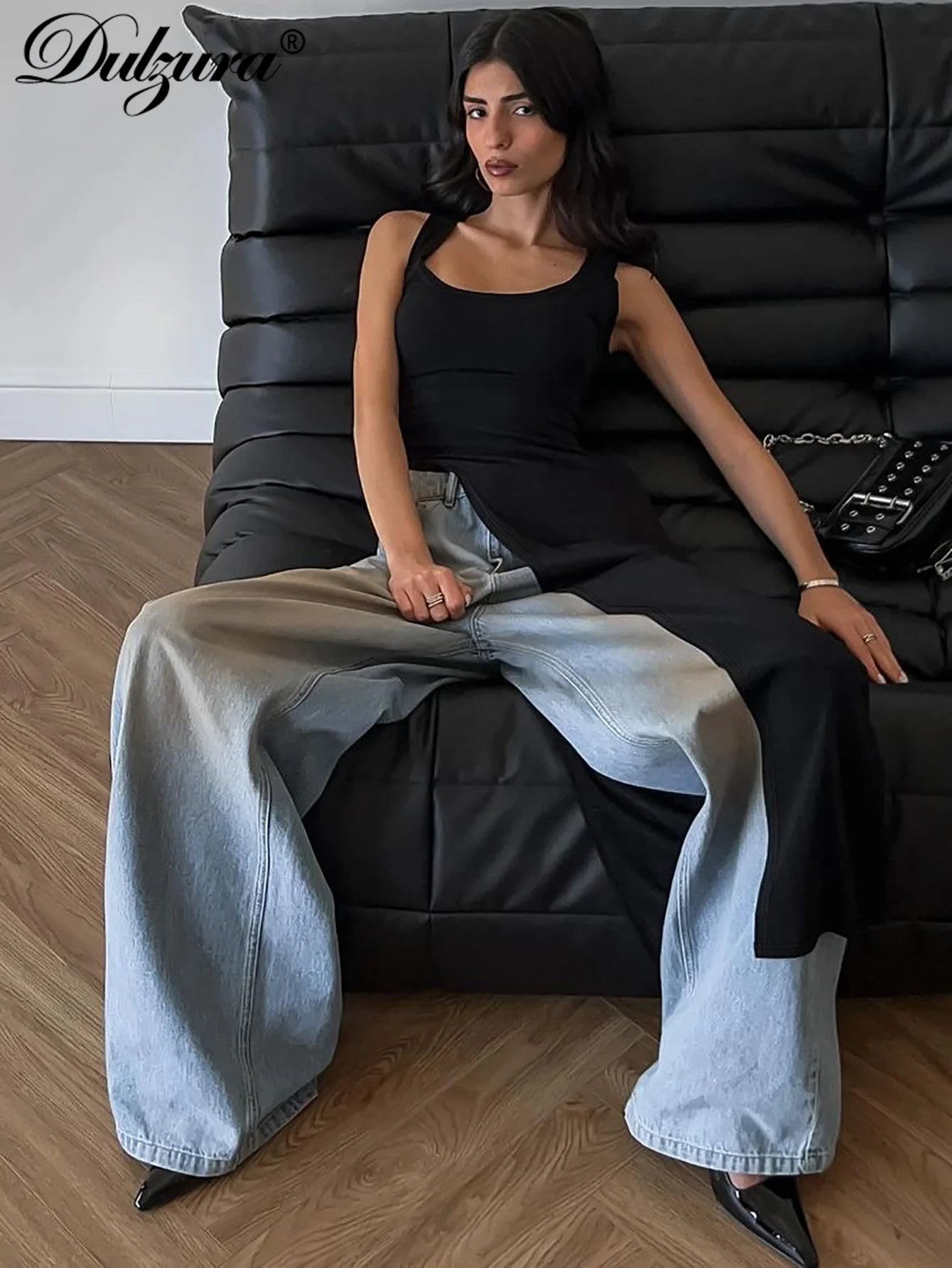 Dulzura 2024 Sexy Sleeveless Side High Split Dress Solid Backless