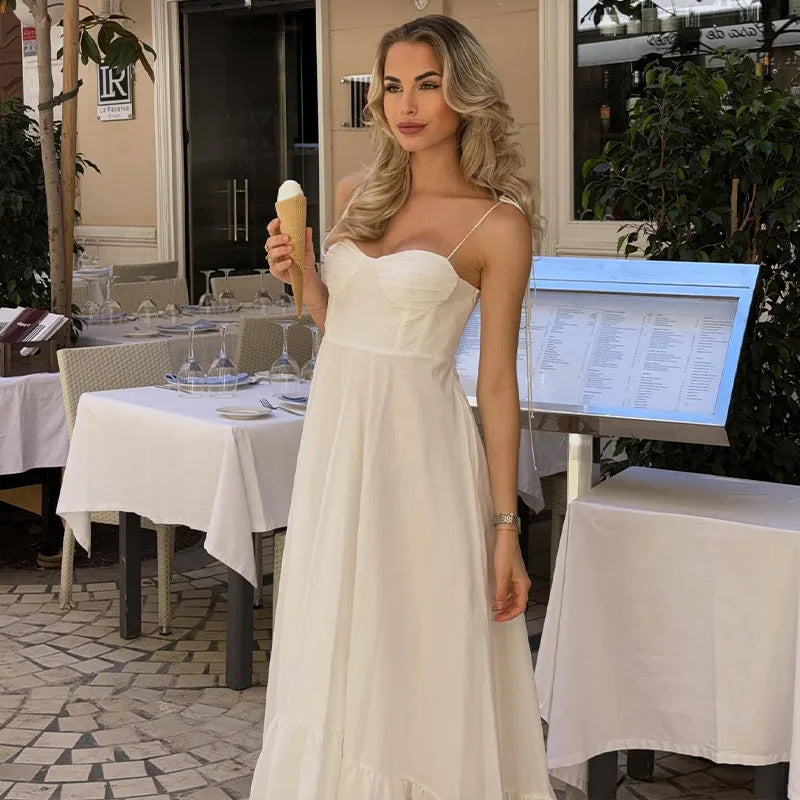 2024 New Fashion Summer Sleeveless Bandage Party Dress White Lace