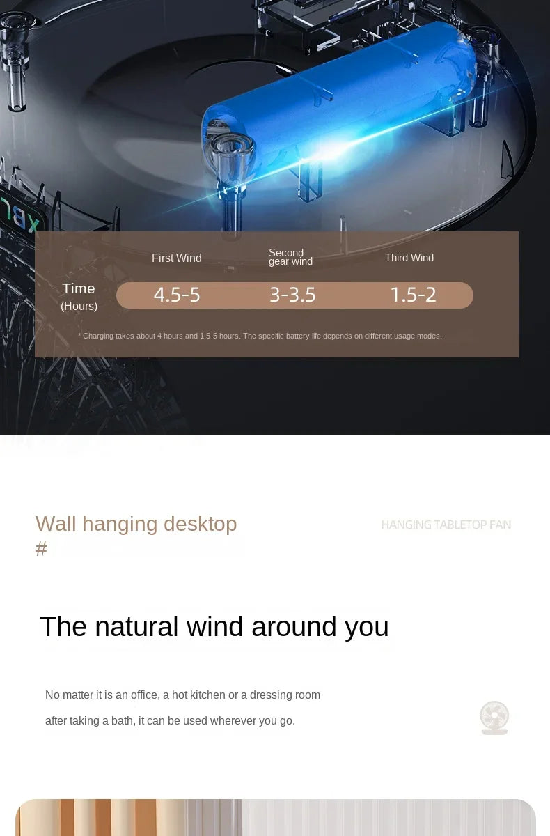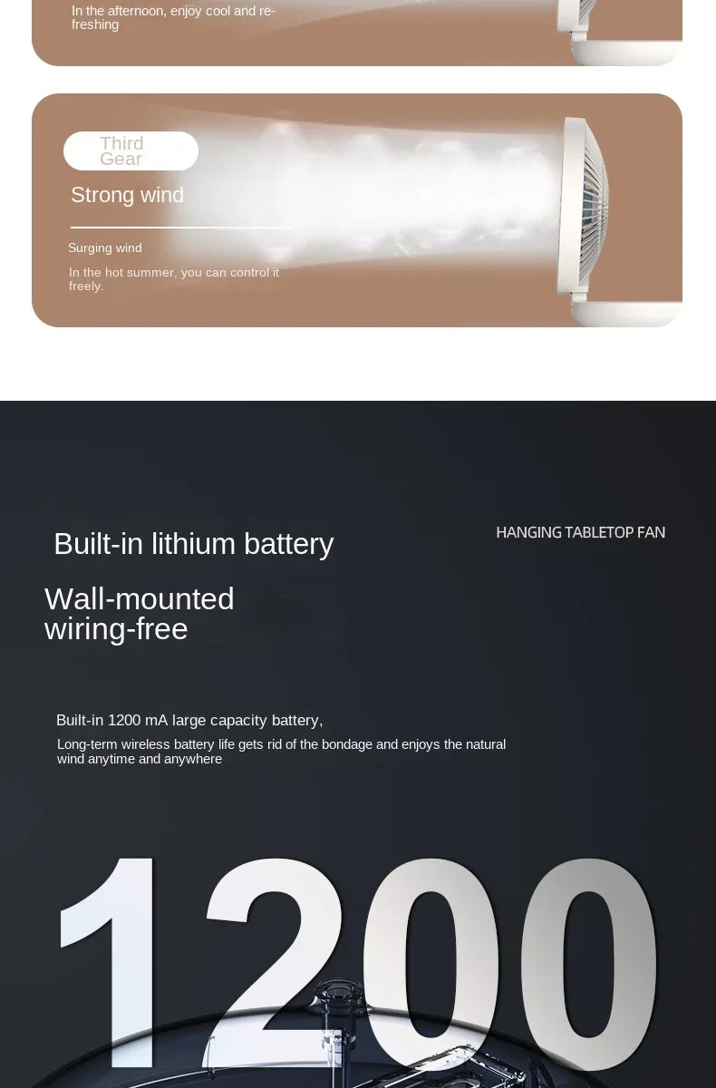 ABYYTE 2025Hot Sell 2IN1 Folding Desktop Fan Portable Air Conditioner Wall Mounted Fan Rechargeable with 3 Gears for Home Office