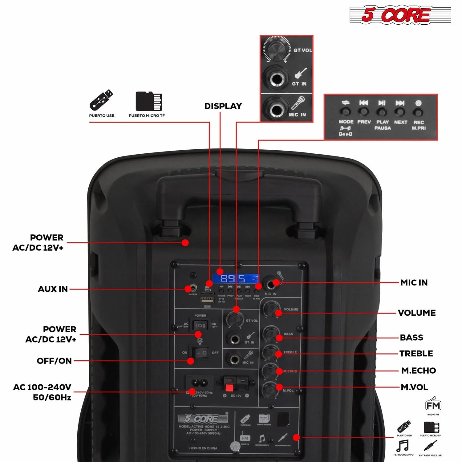| Experience powerful sound with the 5 Core DJ PA party speaker, featuring a 12 inch speaker and a frequency range of 40hz -18khz. Delivering an impressive 100W RMS & 1000W peak power, a robust 23 Oz magnet, it ensures deep bass and clear highs. The super bullet tweeter enhances audio clarity. Designed for convenience, it includes a retractable handle, wheels, which make it easy to carry. This is a rechargeable DJ speaker with a subwoofer; you do not need an outlet to enjoy high quality music. One single charge will run for 3 to 5 hours. The remote control offers easy operation. The Bluetooth studio speaker systems brings professional music to home, outdoors, or karaoke. |