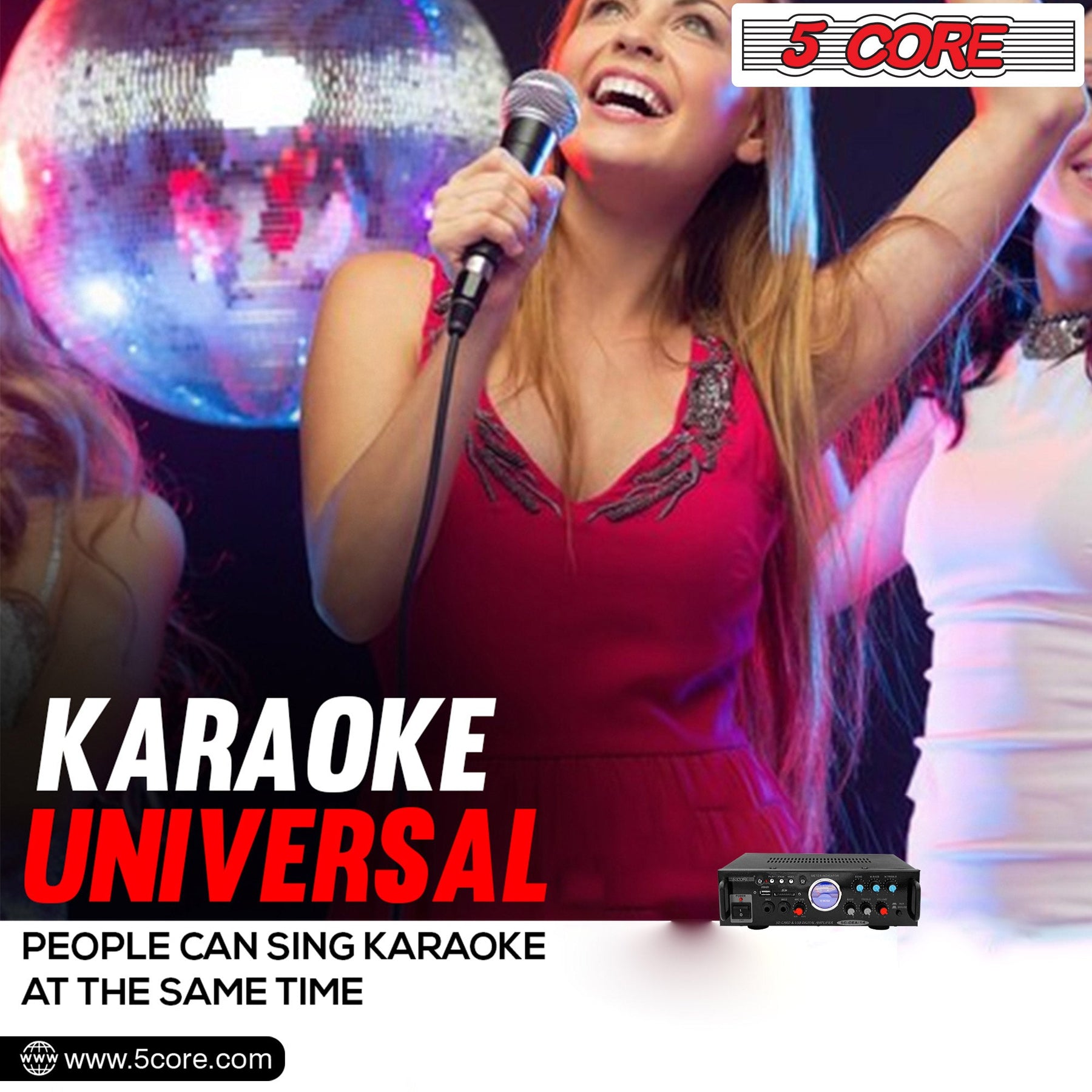 | Experience the power & versatility of the 2 Channel 5 Core stereo amplifier receiver. This amplifier is perfect for your Car, PA, or home theater acoustic sound system. Enjoy high-quality amplified audio with 300W PMPO and support for multi speakers(upto 2). Its multi-input capability allows playback from USB, SD, and AUX sources and even includes built-in 2 microphone inputs.
