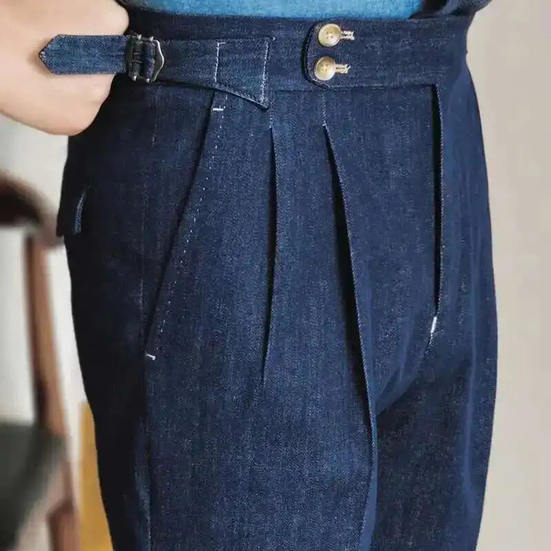 Denim Blue Quality Italy Business Dress Pants Men  Office Social Suit Pants Casual Wedding Groom Trouser Pantaloni Uomo Casual