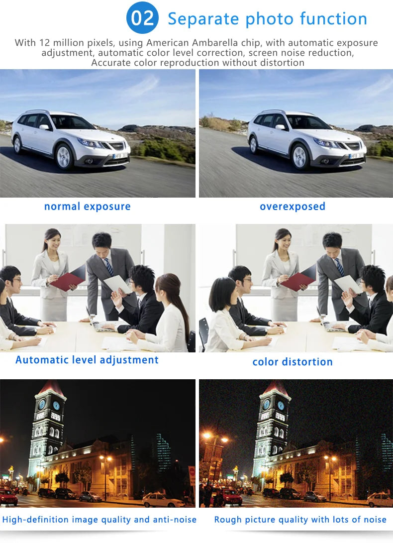 The HD camera can be used as an ordinary HD camera or professional HD tachograph,to record 1920X1080P FULL HD high-resolution videos and pictures , all can be saved in the Micro SD card. The FULL HD meticulous and perfect videos and pictures can be recorded by the product.