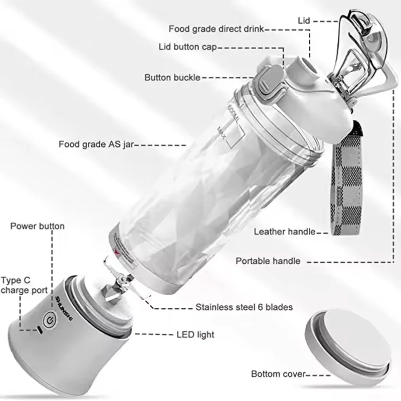 Portable Travel Blender 600ml Smoothie Maker With Spout Portable Blender USB Rechargeable Protein Blender