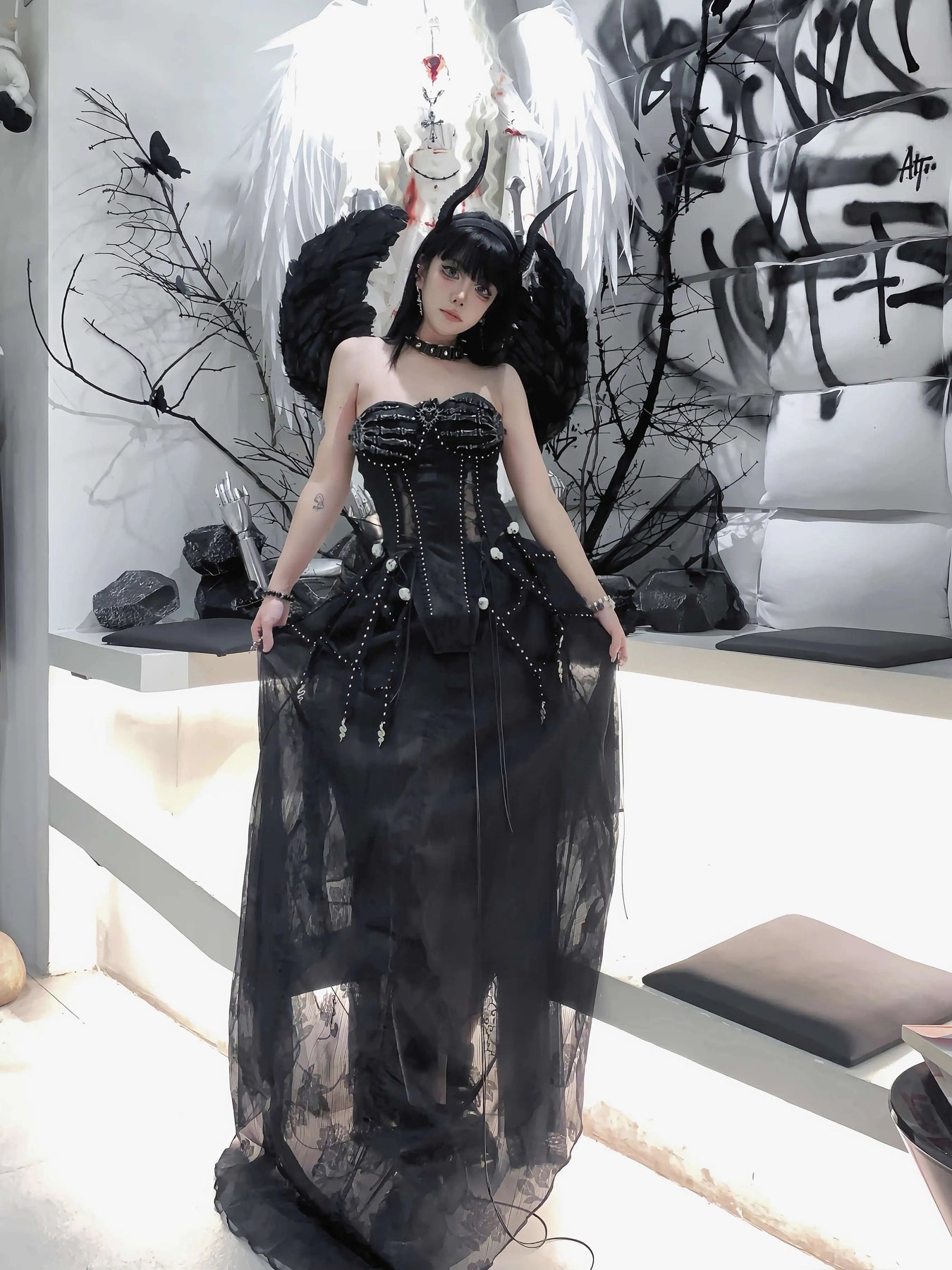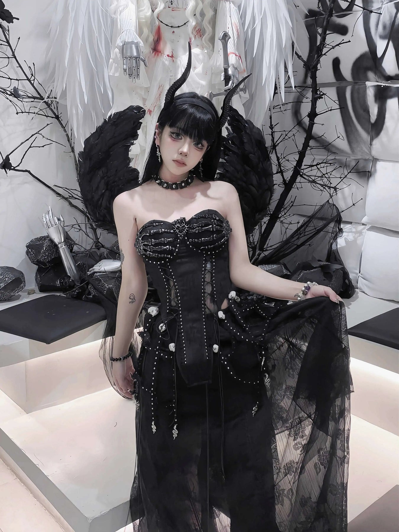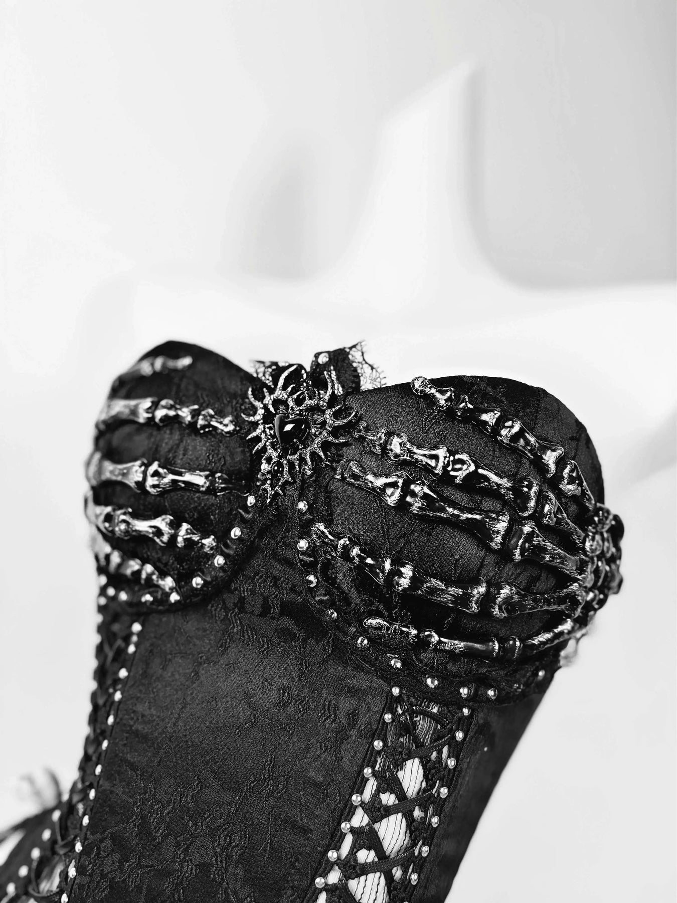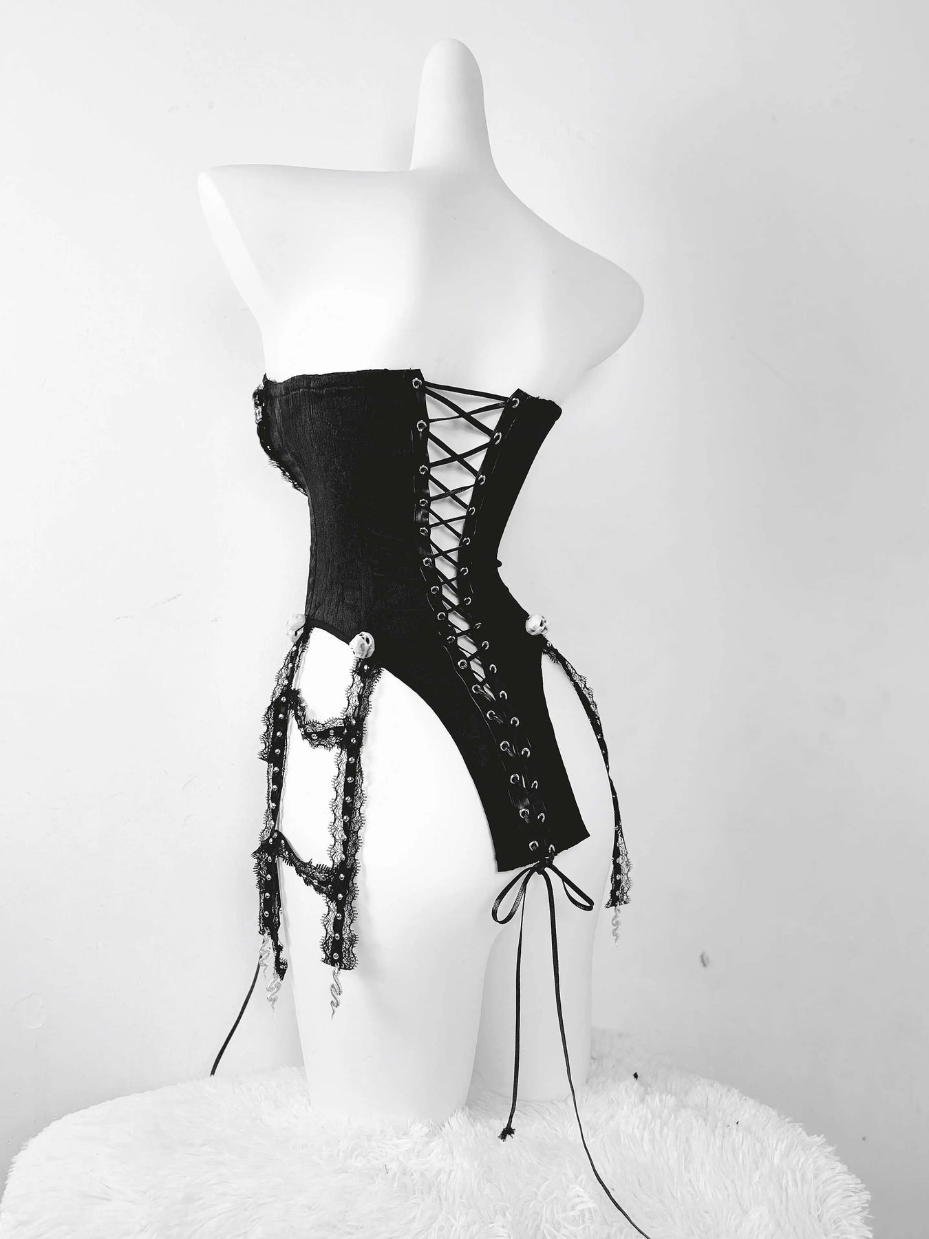 TDH Heavy Industries Handmade Pure Black Gothic Black Strap Drawstring Chest, Bird Cage, Affordable Bundle Body, Skincare Top