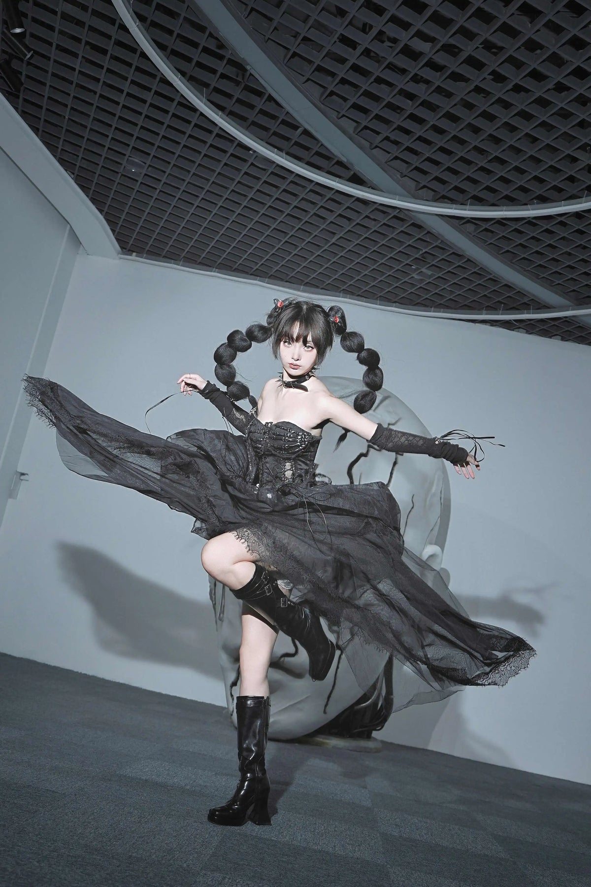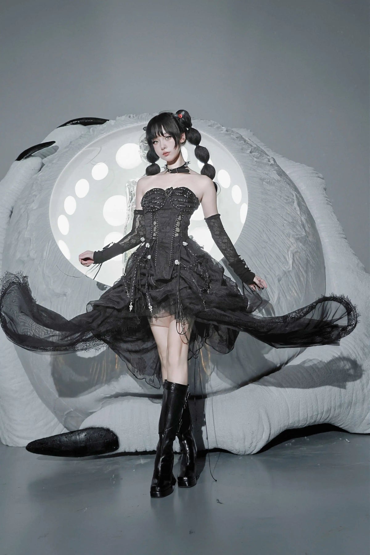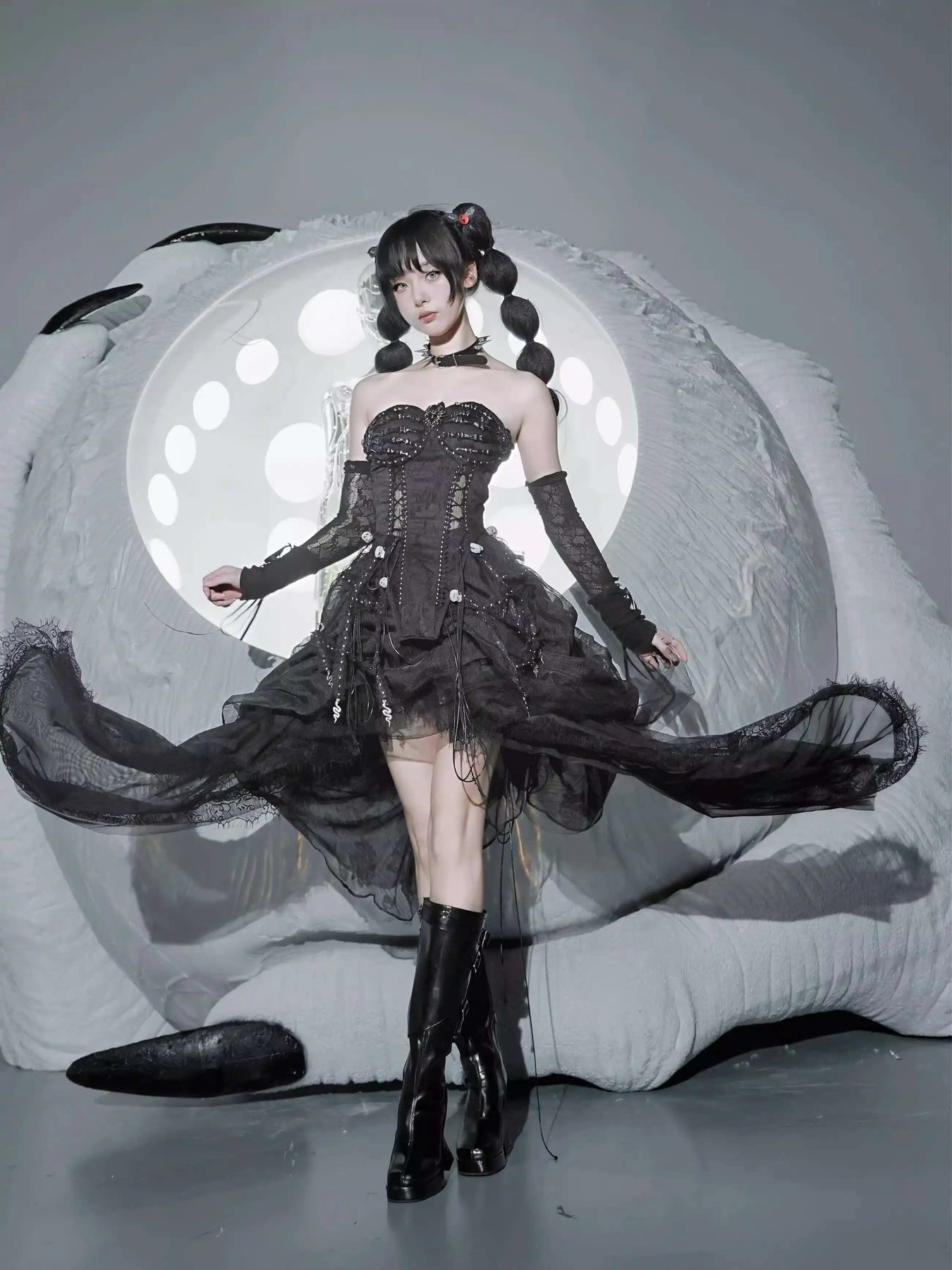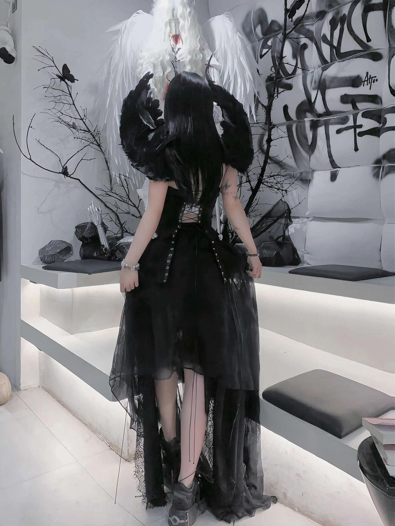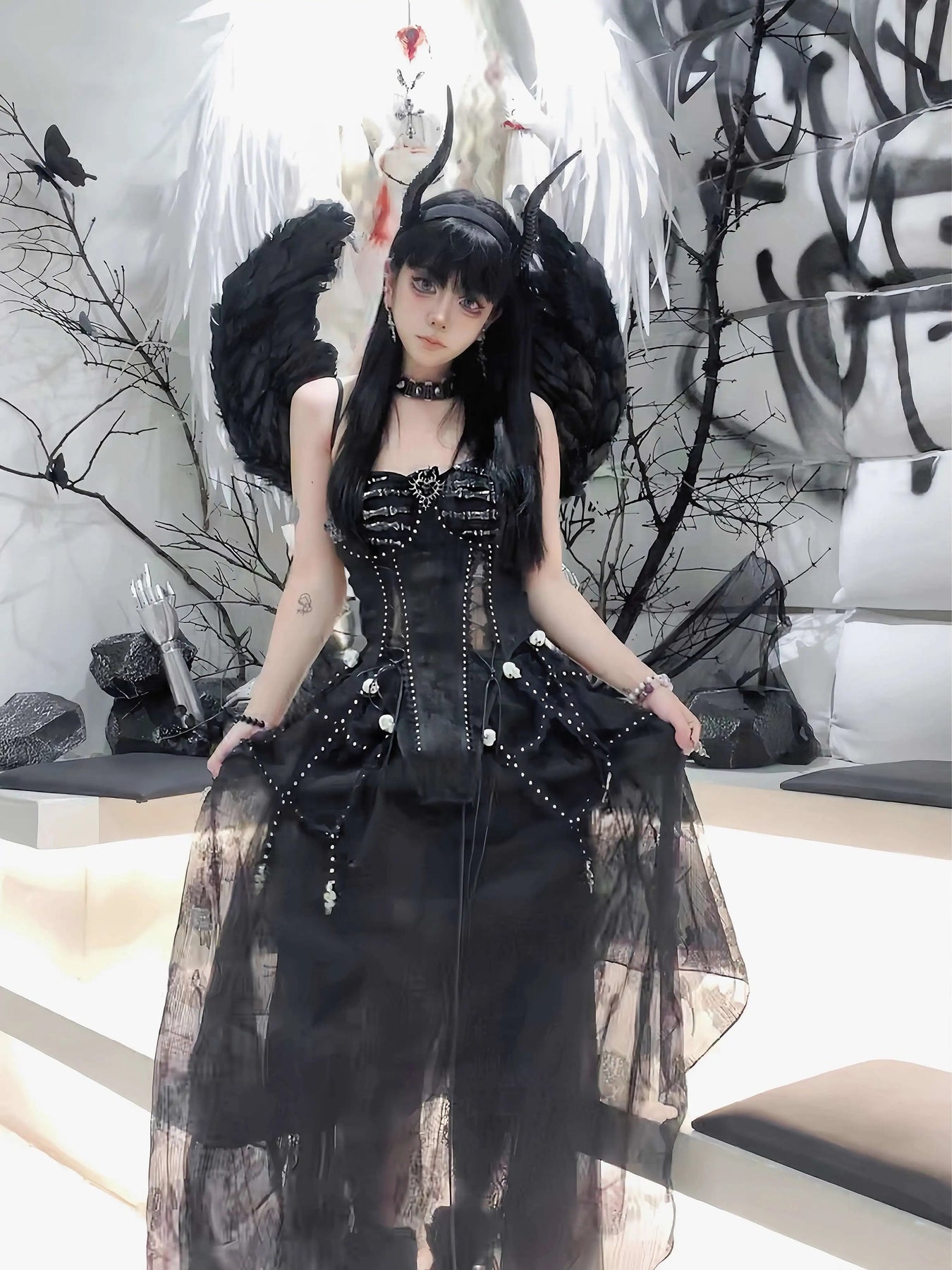 TDH Heavy Industries Handmade Pure Black Gothic Black Strap Drawstring Chest, Bird Cage, Affordable Bundle Body, Skincare Top